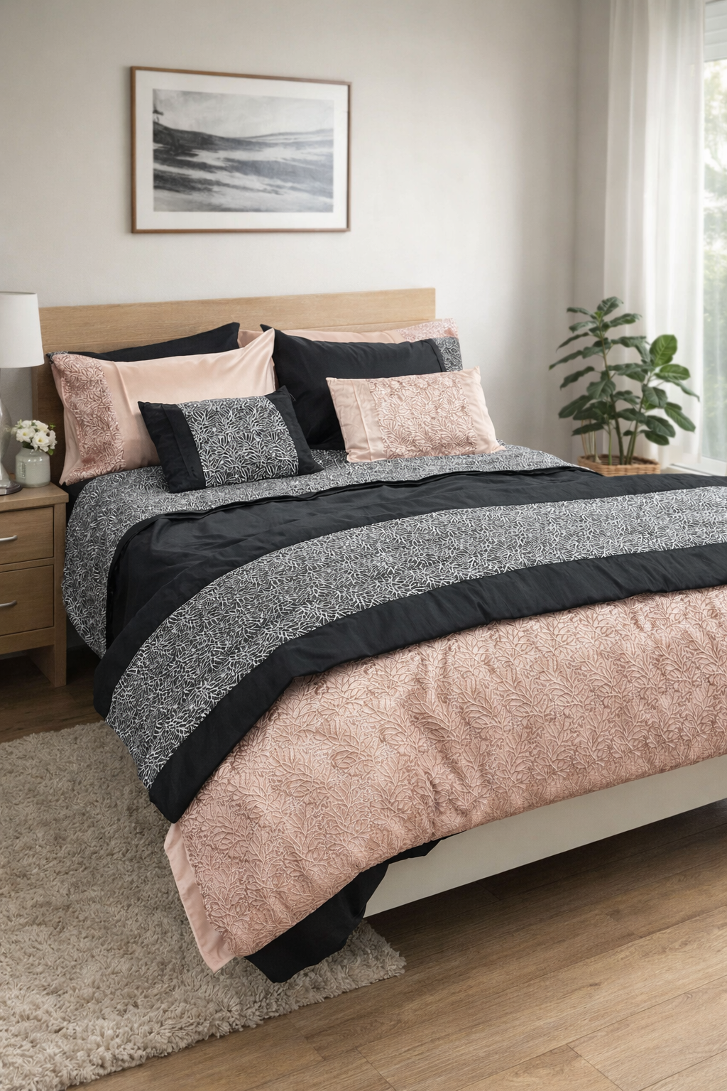 When balanced carefully, this combination feels confident and refined - a meeting of delicacy and strength. Blush tones soften bold black, while deeper pinks introduce drama without losing elegance.