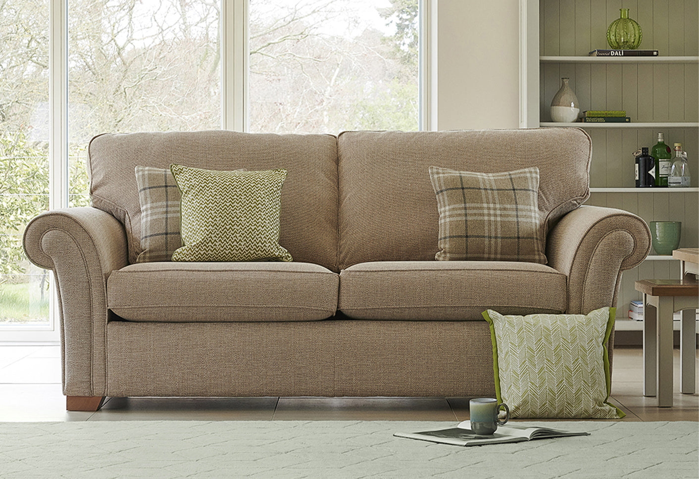 With its classic and casual design and timeless scroll arms, our Ripley range is a fantastic addition to any Country-inspired home. Available in a choice of sofas, snugglers, accent chairs and footstools, you can find the perfect combination for your home. The high-back smooth cushions and hardwood and softwood combined frames provide crowning support, comfort and durability. Style it with a beautifully cosy rug and some candles for a coastal country charm in your home. Choose from a vast selection of luxury fabrics with a beautiful mix of plain, stripe and check options.