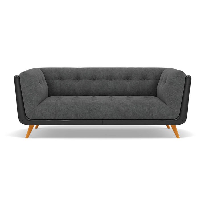 Mixing fabric and leather, our Siena small sofa has simple, clean lines and button details. Excellent for homes with design-led Scandinavian decor. Due to its size, it’s ideal for smaller rooms. Its minimalist look with exposed wood feet creates an airy feeling, which is especially beneficial for compact spaces that can easily seem crammed when fully furnished. This is a modern take on a Chesterfield sofa, blended with the modern features of contemporary Scandi design. Its robust frame and solid suspension system assure that it has been built not only to last but for comfort. Available in a wide range of leather and fabric upholstery options, so you’ll find the perfect piece for your home. Pair with its coordinating footstool, armchair, or large sofa if you’re furnishing a spacious room.