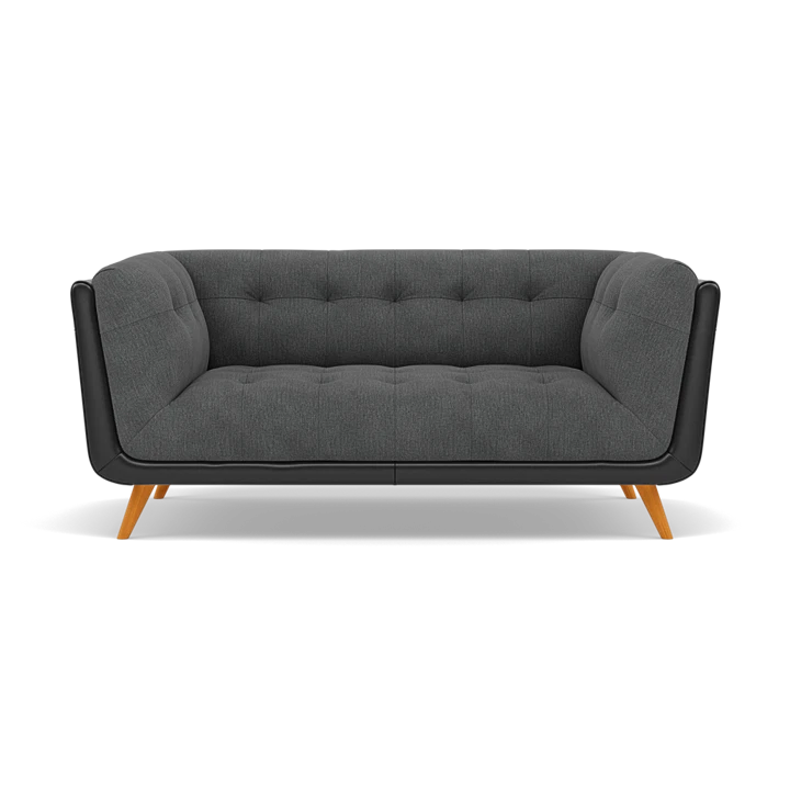 Mixing fabric and leather, our Siena small sofa has simple, clean lines and button details. Excellent for homes with design-led Scandinavian decor. Due to its size, it’s ideal for smaller rooms. Its minimalist look with exposed wood feet creates an airy feeling, which is especially beneficial for compact spaces that can easily seem crammed when fully furnished. This is a modern take on a Chesterfield sofa, blended with the modern features of contemporary Scandi design. Its robust frame and solid suspension system assure that it has been built not only to last but for comfort. Available in a wide range of leather and fabric upholstery options, so you’ll find the perfect piece for your home. Pair with its coordinating footstool, armchair, or large sofa if you’re furnishing a spacious room.
