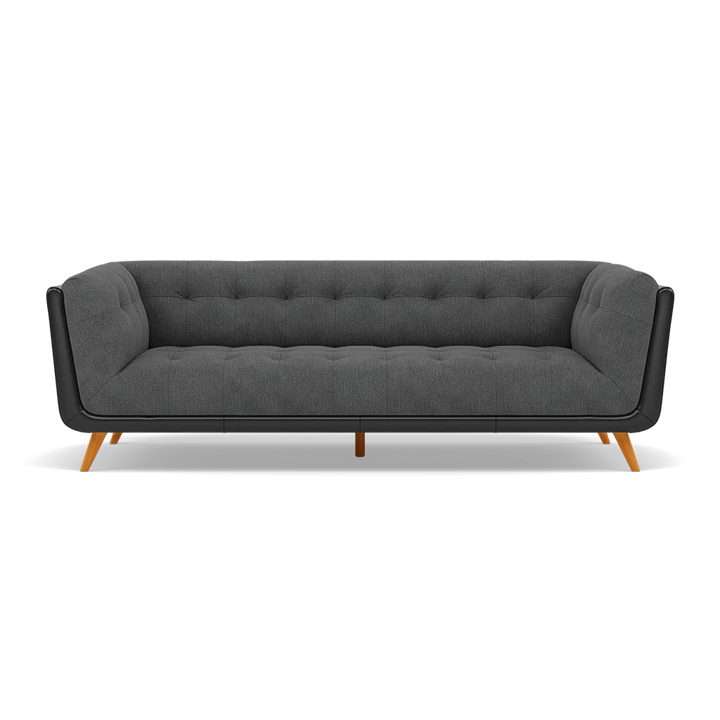 Our Siena Large Sofa combines functional with a minimalist design. This is a modern take on a chesterfield sofa, blended with the modern features of contemporary Scandi design. It features button detailing and exposed wooden legs. Perfect for calm scandi-inspired home décor with clean, simple lines. Its strong hardwood and plywood combination frame and sturdy suspension system ensure durability and comfort. You can easily dress this couch up with some cushions and throws in calming, neutral colours, or just keep it simple.