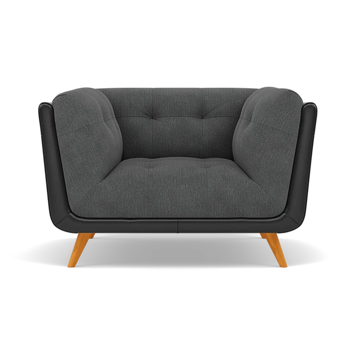 With its minimalist design, our Siena armchair is a perfect choice for modern homes with simple lines and design-led pieces of furniture. This scandi-inspired chair features bare wooden legs that makes the room feel open and breezy. The mixture of leather and fabric upholstery that is elevated by button detailing on the back and seat gives this chair a modern look. Its strong frame combines hardwood and plywood to provide durability, while its sturdy sinuous coil spring suspension system ensures optimal weight distribution and seating comfort. You can spruce it up with a decorative cushion or blanket, or just have it stand on its own to let is beautiful clean lines dominate. Find the perfect colour variation for your space from the wide range of fabric and leather upholstery choices available on this armchair. We also carry matching sofas and a footstool to complete the look.