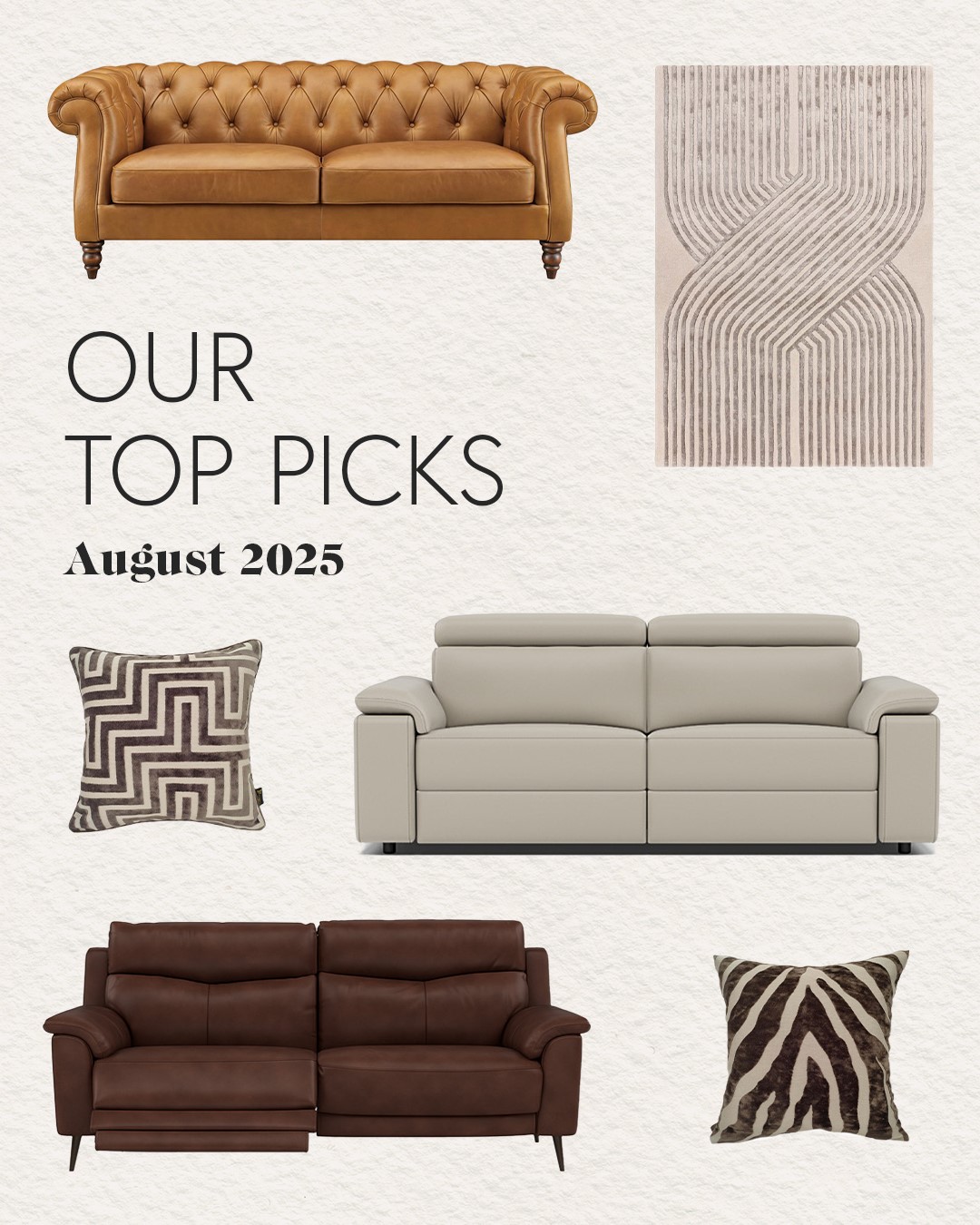 This August, we're celebrating the timeless appeal of leather. Our latest edit focuses in on the true beauty of leather sofas, highlighting the natural beauty, unique textures, and individual character that only leather can offer. Our team have picked pieces we believe deserve a spot in your home. We've considered both style and comfort. So there's something here for every leather lover. And to take each look a step further, we’ve paired these sofas with carefully chosen accessories to elevate your space and add that perfect pop of energy.